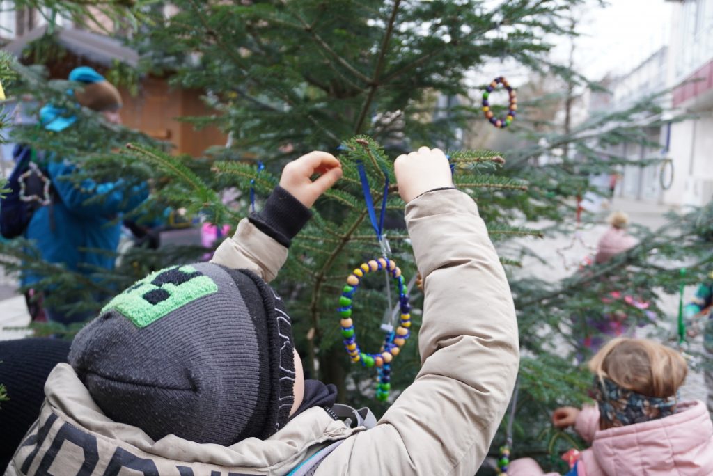 Bereits seit Wochen hatten die Kinder der städtischen Kindergärten Christbaumdekoration gebastelt. Nun besuchten die Gruppen mit ihren Leiterinnen die Innenstadt und verliehen den Bäumen am Christkindlmarkt den letzten Schliff. Herzlichen Dank an die fleißigen Künstlerinnen und Künstler aus dem Kindergarten Waginger Straße, dem Kindergarten „Blaues Haus“, der Kinderkrippe und dem Kindergarten „Sonnenschein“. Ebenso herzlichen Dank an die BRK Tagespflege, die ebenfalls wieder einen Baum liebevoll geschmückt hat.