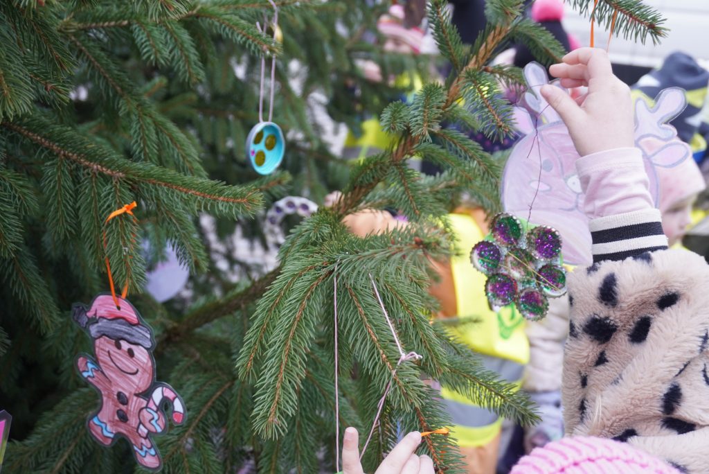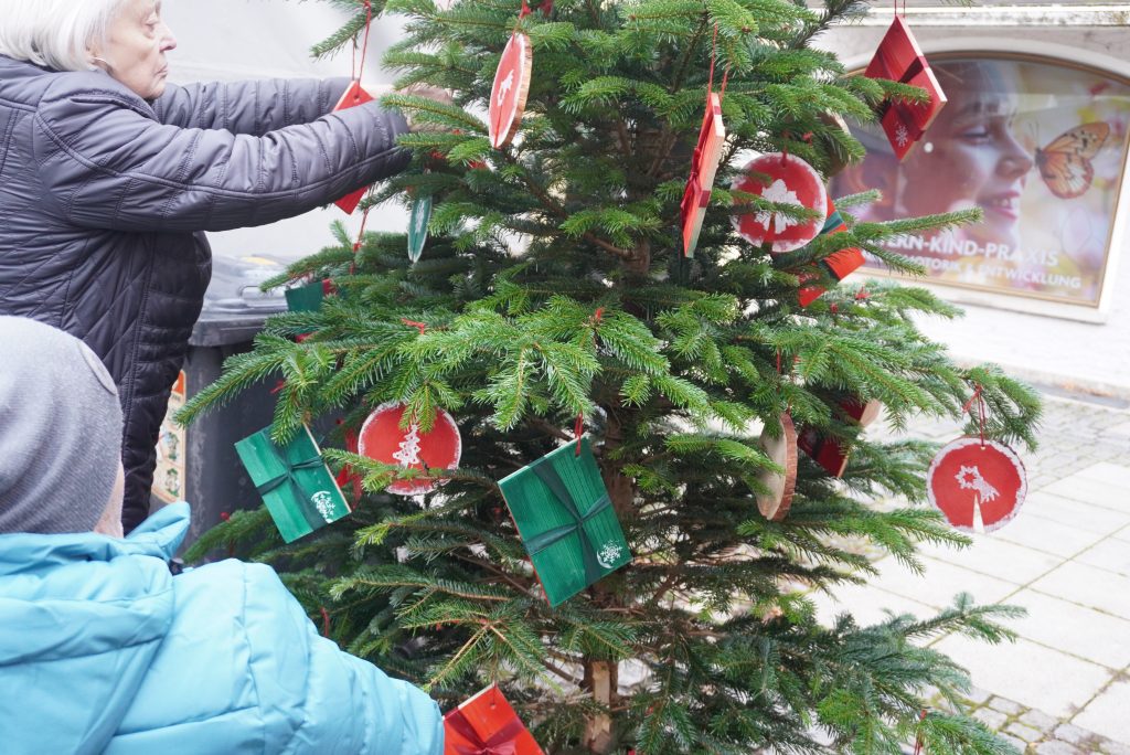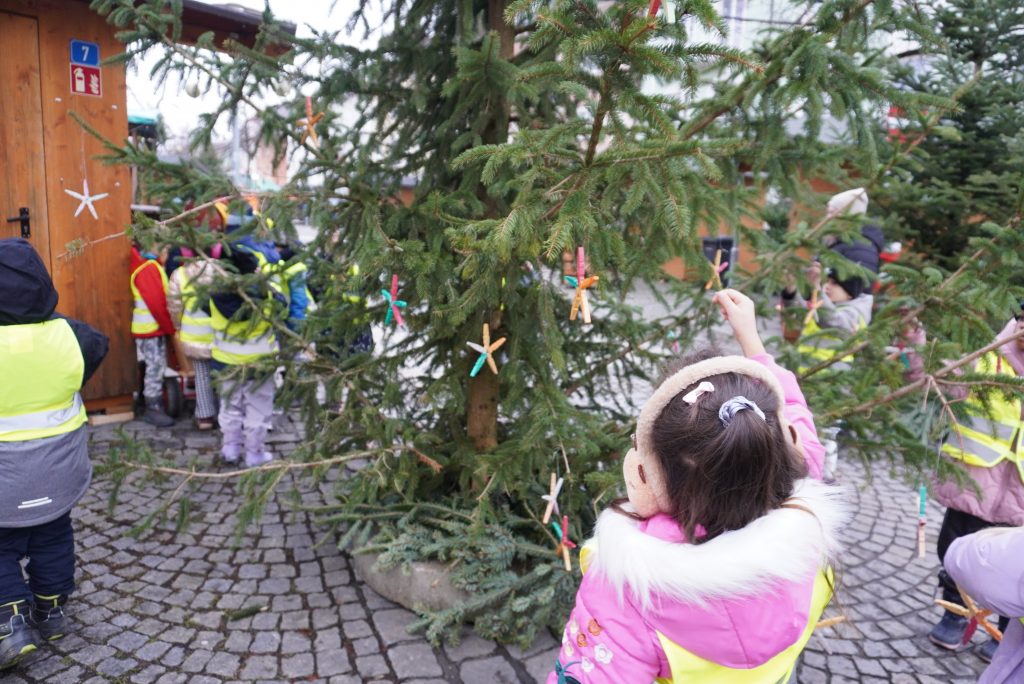 Bereits seit Wochen hatten die Kinder der städtischen Kindergärten Christbaumdekoration gebastelt. Nun besuchten die Gruppen mit ihren Leiterinnen die Innenstadt und verliehen den Bäumen am Christkindlmarkt den letzten Schliff. Herzlichen Dank an die fleißigen Künstlerinnen und Künstler aus dem Kindergarten Waginger Straße, dem Kindergarten „Blaues Haus“, der Kinderkrippe und dem Kindergarten „Sonnenschein“. Ebenso herzlichen Dank an die BRK Tagespflege, die ebenfalls wieder einen Baum liebevoll geschmückt hat.