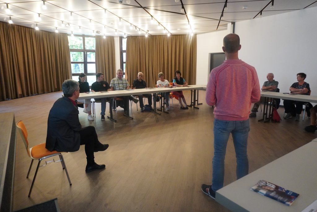 Bürgermeister Markus Hiebl und Stephan Ahne (Stadtverwaltung) beantworten Fragen zum Stadtbus