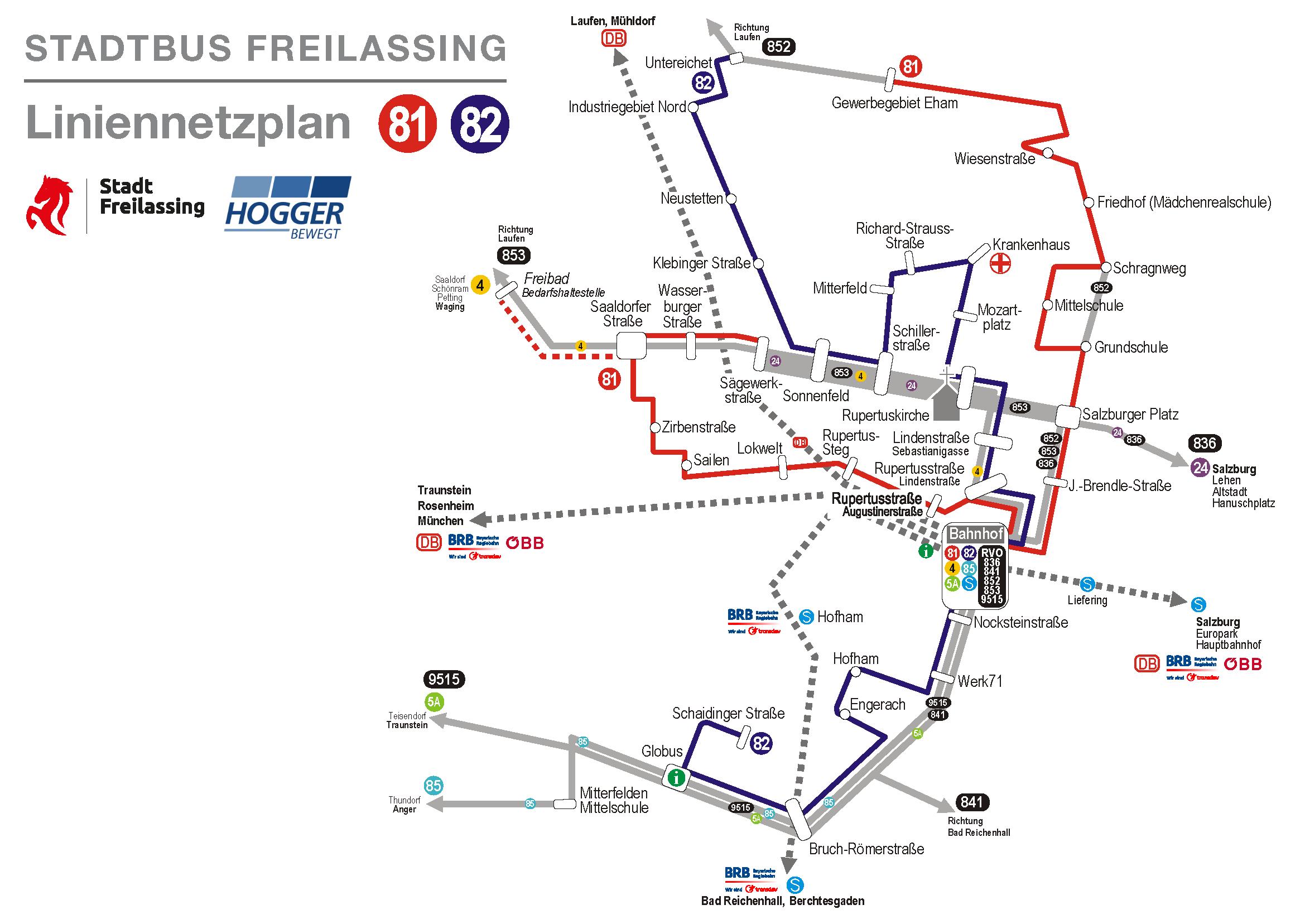 Der Freilassinger StadtBus fährt als Linie 81 und Linie 82 im Stadtgebiet von Freilassing.