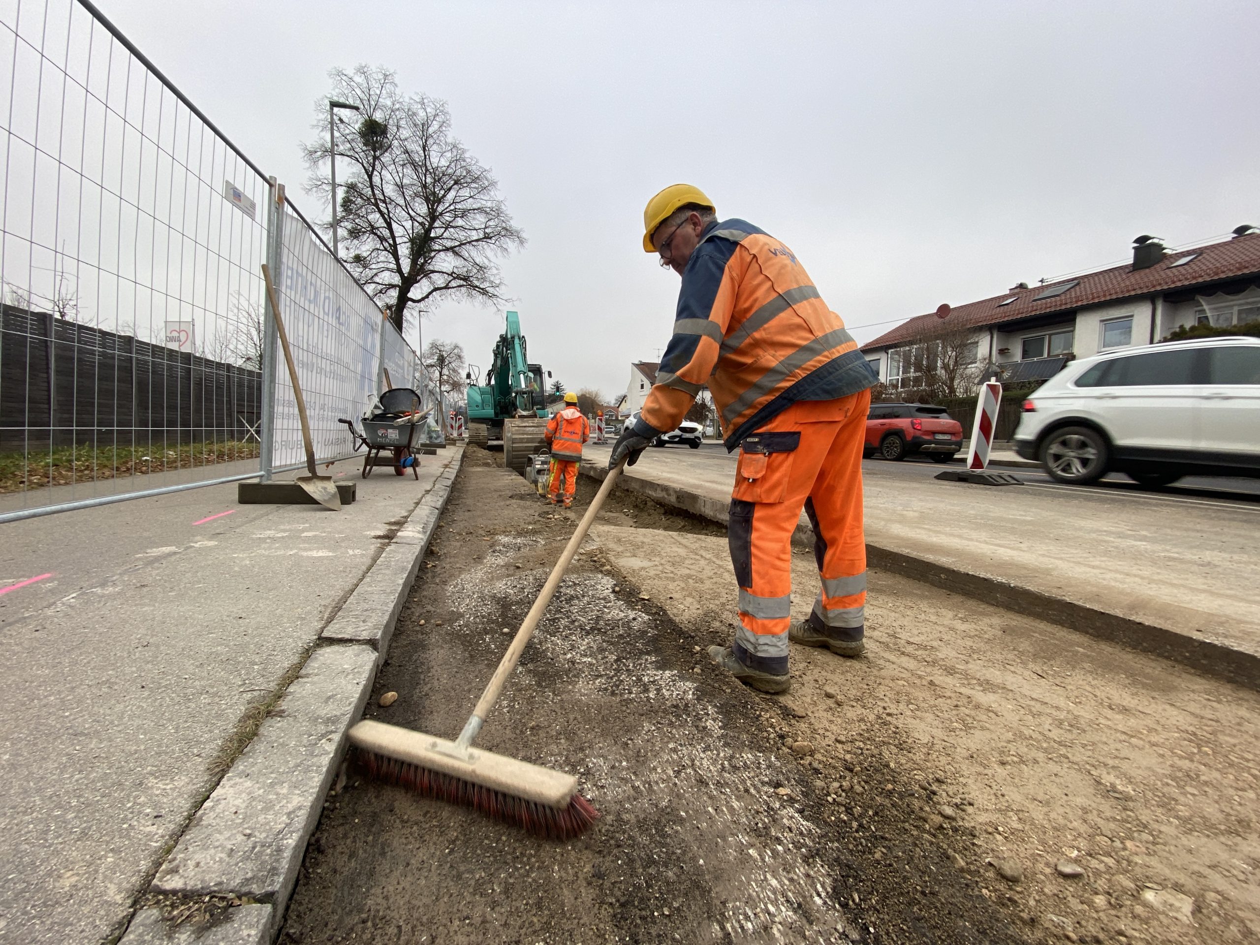 Jetzt wird zusammengekehrt. Die Arbeiten an der Münchener Straße liegen in den letzten Zügen. Mit Freitag, 19. Dezember beginnt die Winterpause, die Münchener Straße ist bis voraussichtlich Mitte Februar wieder frei befahrbar.