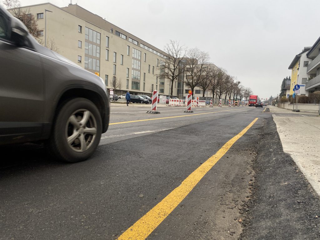 Bis Donnerstag, 18. Dezember, werden noch die letzten offenen Löcher auf der Straße und auf Zufahrten asphaltiert, die Bauzäune abgebaut und außer beim Radwegstreifen die gelben Markierungen entfernt. Damit gelten für den Verkehr wieder die weißen Markierungen.