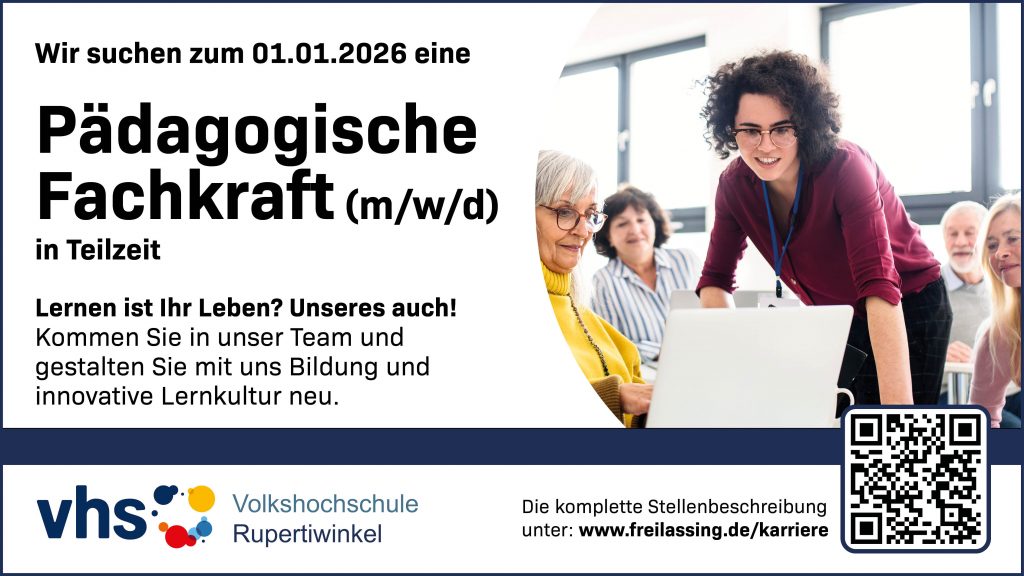 Die vhs Rupertiwinkel sucht zum 01.01.2026