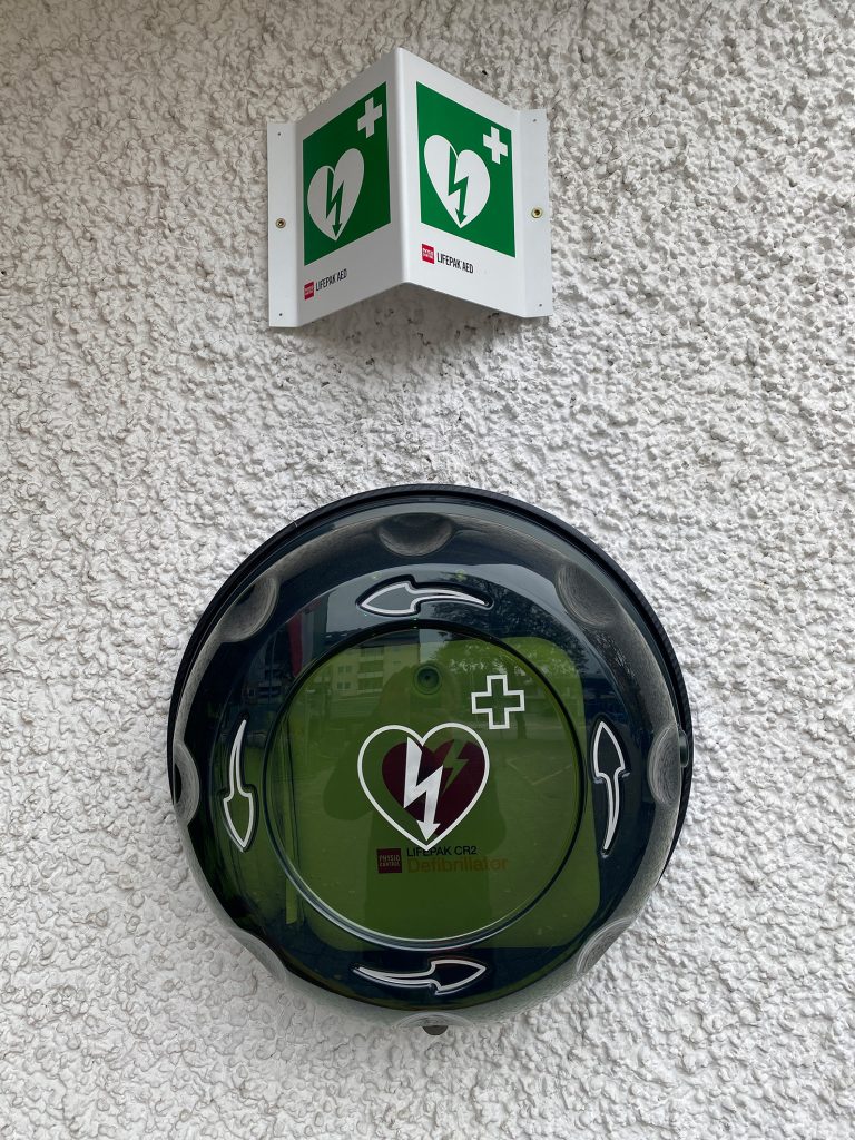 Der neue Defibrillator neben dem Rathauseingang ist von außen frei zugänglich.