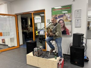 Im Anschluss lud die Stadt zu einem gemütlichen Beisammensein zurück in die Mensa und in das Schülercafé der Mittelschule St. Rupert. Bei einem Imbiss nutzten Gäste, Lehrkräfte, Handwerker und Planer die Gelegenheit zum Austausch und zum Blick in die Zukunft der Schule.