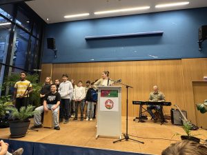 Mit einem kleinen Festakt feierte die Stadt Freilassing gemeinsam mit der Schulgemeinschaft das Richtfest für den Teilneubau der Mittelschule Freilassing St. Rupert. Schüler und Schülerinnen der 6. Klassen setzten dabei musikalische Akzente und griff u. a. mit dem Lied „Chöre“ von Mark Forster eine klare Botschaft auf: Mut, Selbstvertrauen und die Bereitschaft, eigene Talente zu entdecken. Genau dafür soll die Mittelschule St. Rupert auch künftig stehen – als Ort, der junge Menschen stärkt und sie auf ihrem Weg begleitet.