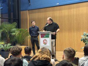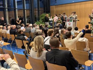 Die Architekten Thomas Gerstmeier und David Kučera knüpften in ihren Grußworten daran an. Besonders betonten sie das gute Miteinander auf der Baustelle und die enge Abstimmung mit Stadt und Schule.