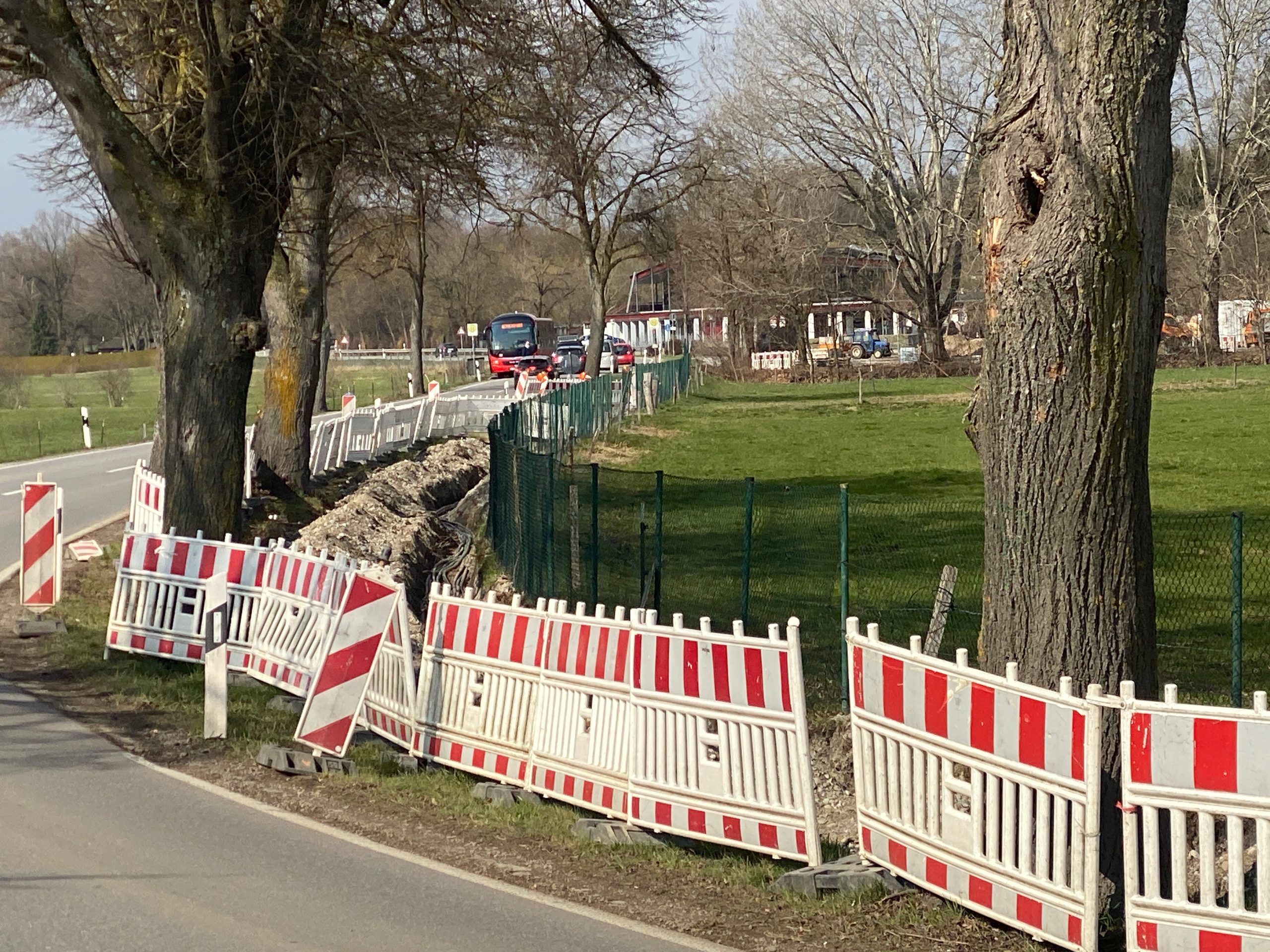 Die Baustelle ist mit Absperrzäunen gesichert. Fußgänger dürfen an der Baustelle entlang auf dem Grünstreifen gehen, Radfahrer müssen im betroffenen Bereich die Straße benutzen. Die Stadt bittet alle Verkehrsteilnehmer um Vorsicht und Rücksicht in diesem Bereich.