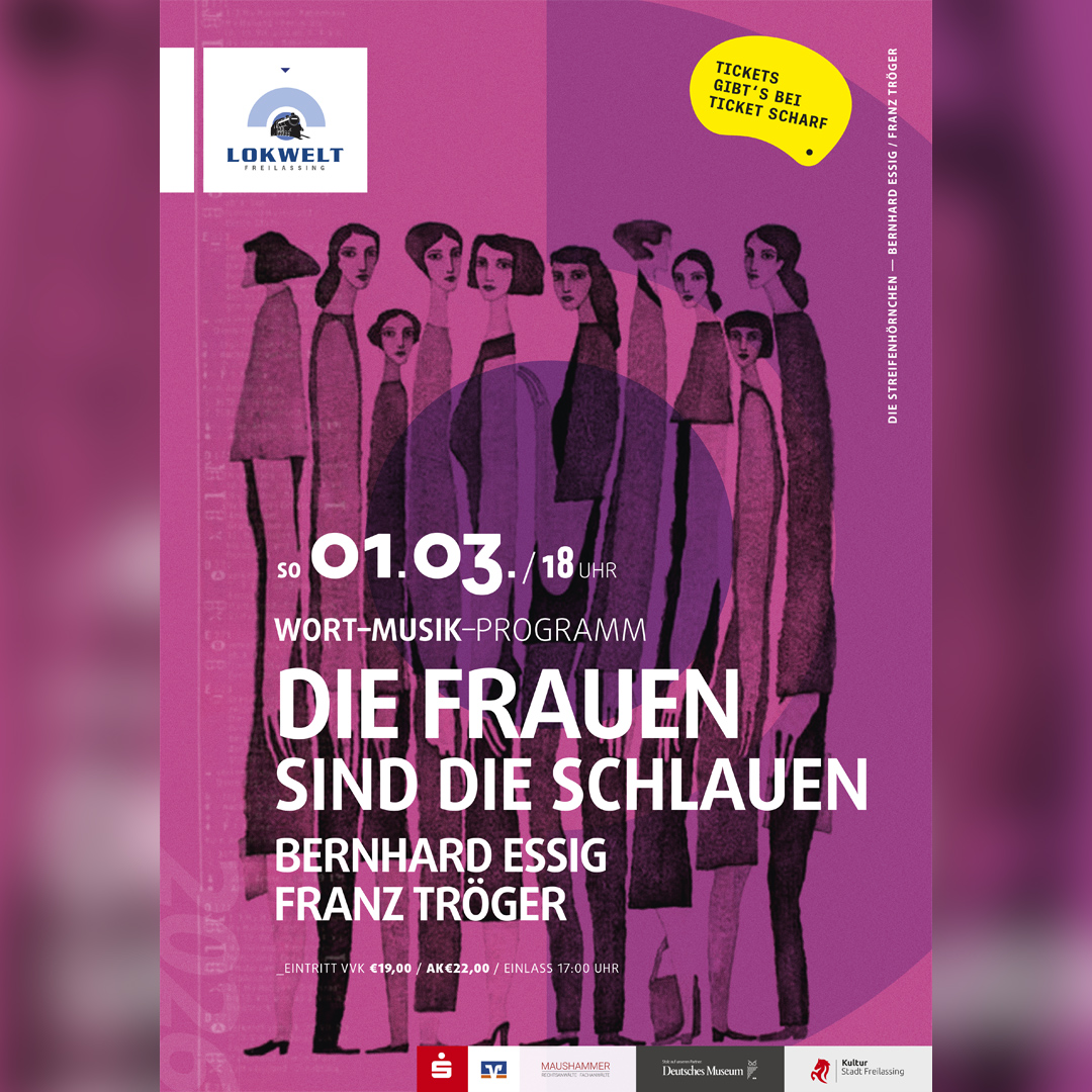 Ihre Bühnenbekleidung ist Programm: die „Streifenhörnchen“, das sind Rolf-Bernhard Essig und Franz Tröger. Ihr reizender Künstlername bezieht sich aber nicht nur auf das Design ihrer Oberhemden. Sie beide, Tröger und Essig, huldigen mit geflügelten Worten und schelmischen Liedern an diesem Abend der mutmaßlich klügeren Menschheitshälfte. Es geht um Römerinnen, die wahre Gretchenfrage, dämliche Herren und herrliche Damen, kenntnisreiche Waschweiber, Klatsch und Marotten und um den Pantoffelhelden, der auch mal unter die Haube kommt. Eingestreut sind heitere Geschichten über kluge Frauen, die in anderen Sprachen sprichwörtlich sind.