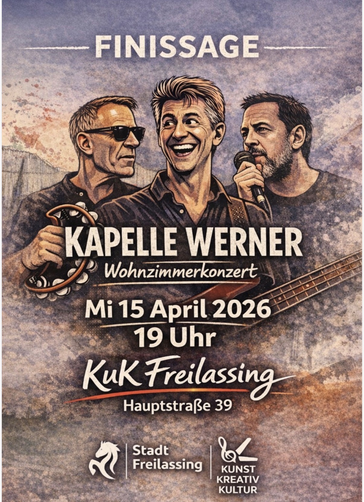 Freilassing – Ein Konzert in Wohnzimmeratmosphäre erwartet Besucher am Mittwoch, 15. April, um 19 Uhr im KuK – Kunst Kreativ Kultur, Hauptstraße 39. Die Kapelle Werner lädt zu einem besonderen Abend mit Acoustic Rock Classics ein.