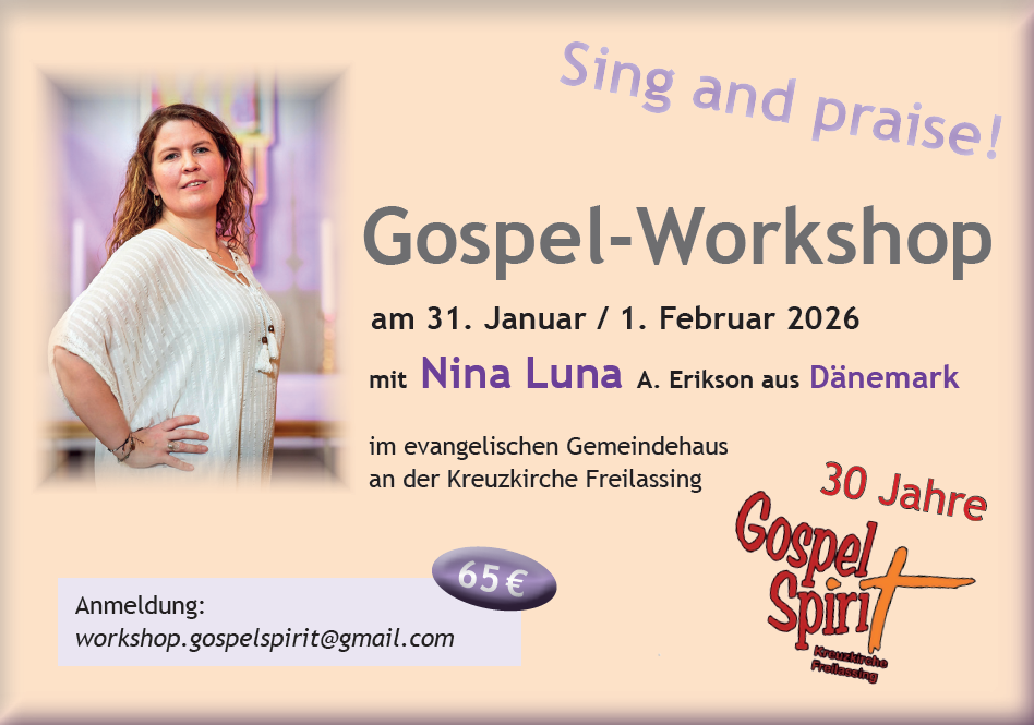 Eintritt / Preise: Anmeldung unter workshop.gospelspirit@gmail.com Teilnahmegebühr: 65 €